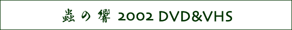 2002年4月-9月まで毎月開催された蟲の響が 一枚のDVDとして完全編集されました。 下見から、スタッフの裏話、本番の模様など内容充実の73min。 DVD+CD-ROM \3,000-(別途送料) VHS+CD-ROM \3,000-(別途送料) |